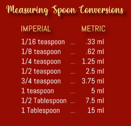 Click HERE for a Measuring Spoon Conversion Chart.